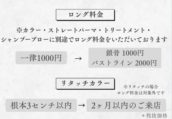 ※トリートメントのロング料金は6Step、8Stepトリートメントのみ。